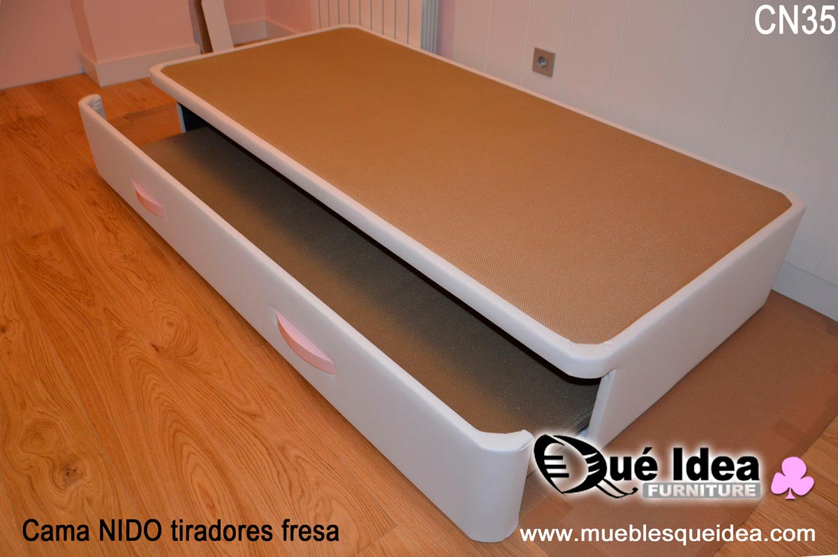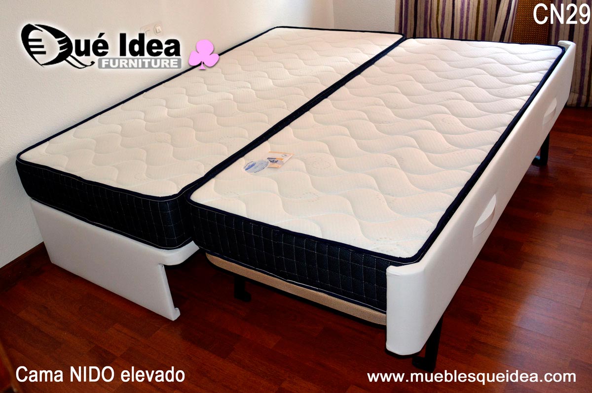 Para comprar una cama nido se han de tener en cuenta sobre todo las medidas necesarias para la extracción del arrastre o nido, teniendo muy en cuenta que se necesita algo de espacio para situarnos en los extremos de la cama o en el frente una vez extraído, ya que hay que desplegar las patas para poder usarlo, es importante que usted contacte con nosotros antes de tomar su decisión,