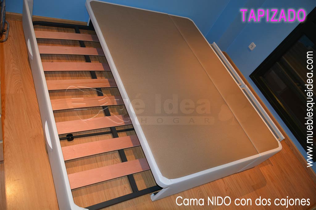 Cama nido tapizada con arrastre de lamas o base tapizada