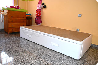 La cama nido no tiene que ser siempre de reducido tamaño e incluso puede tener cajones en uno de sus laterales.