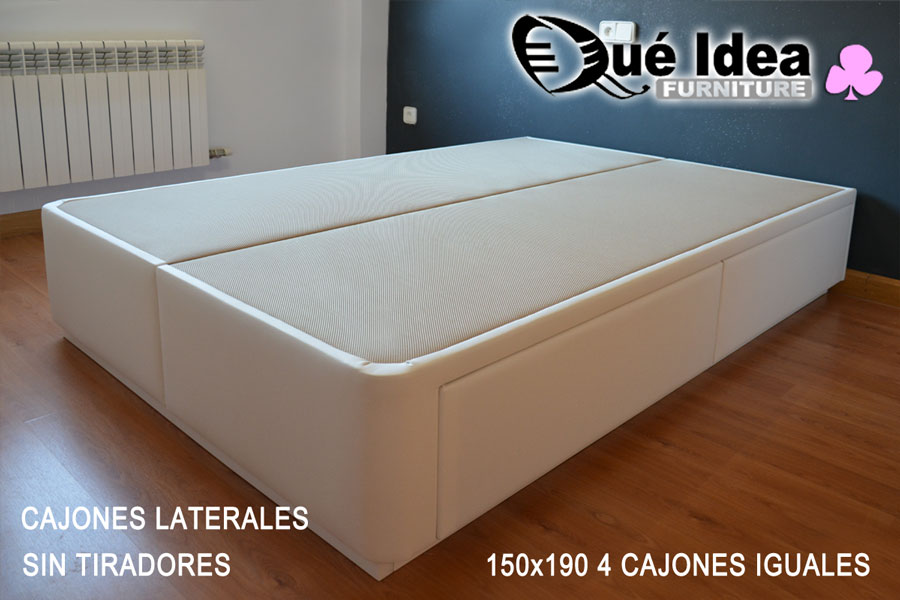 Canapé de cajones iguales en los laterales de 150 cm de ancho por 190 de largo sin tiradores.
