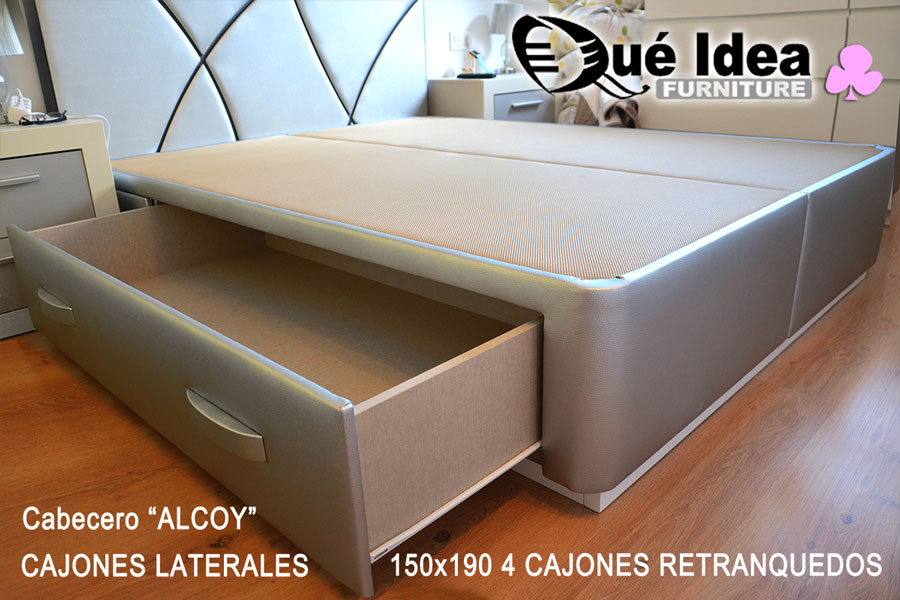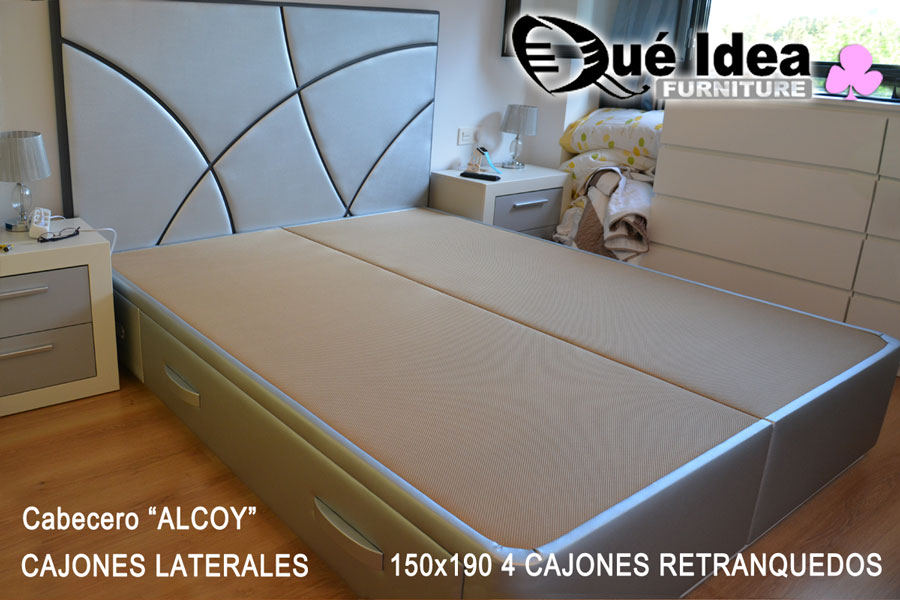 Canapé con cuatro cajones retranqueados y cabecero modelo Alcoy en color plata