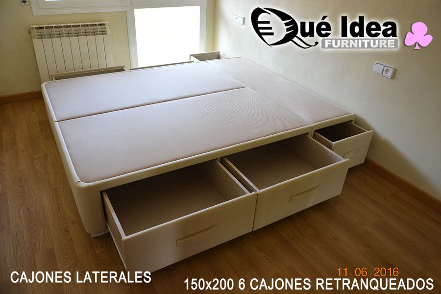 Canapé con seis cajones retranqueados cerrados de 150 de ancho por 200 de largo.