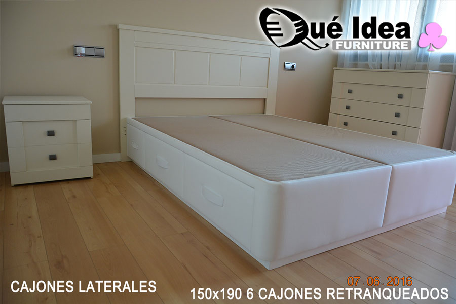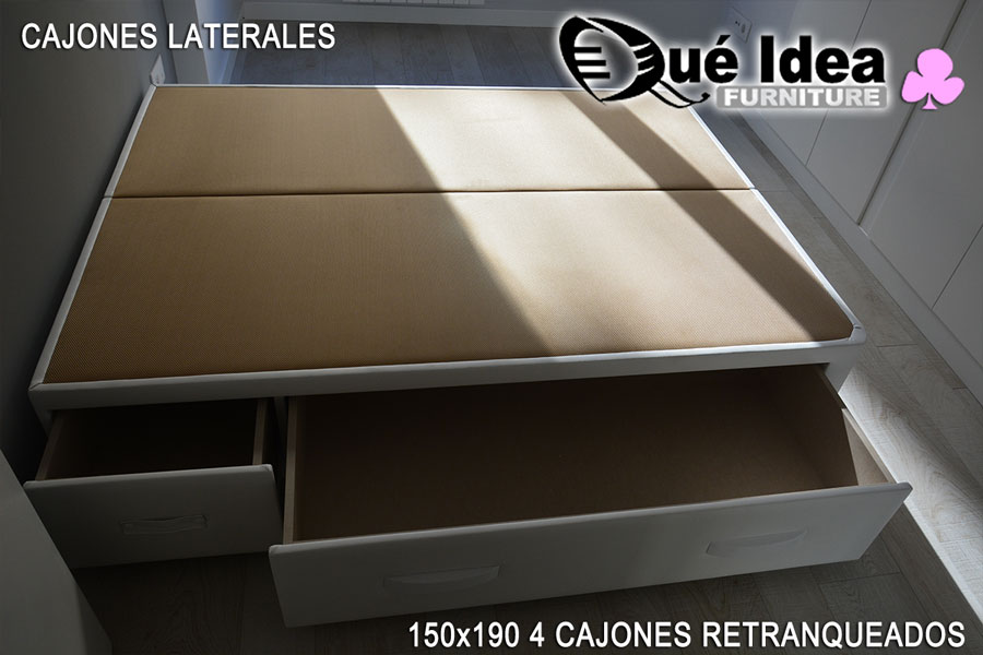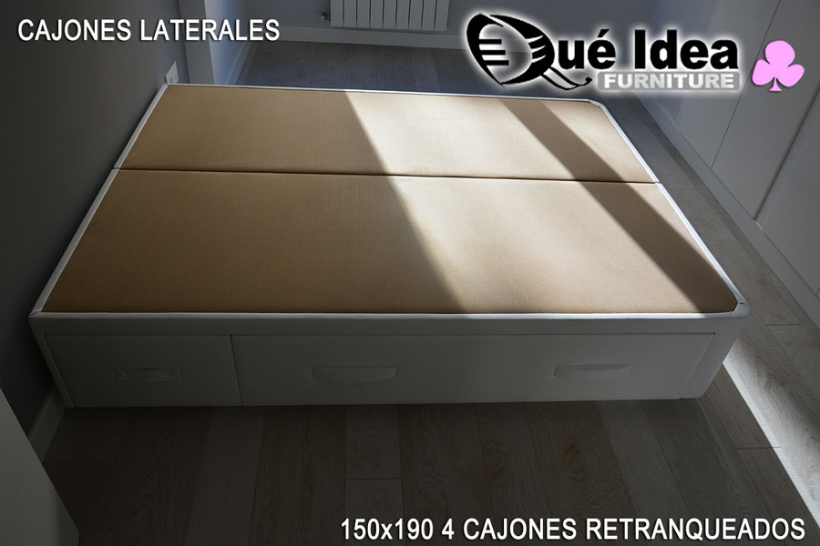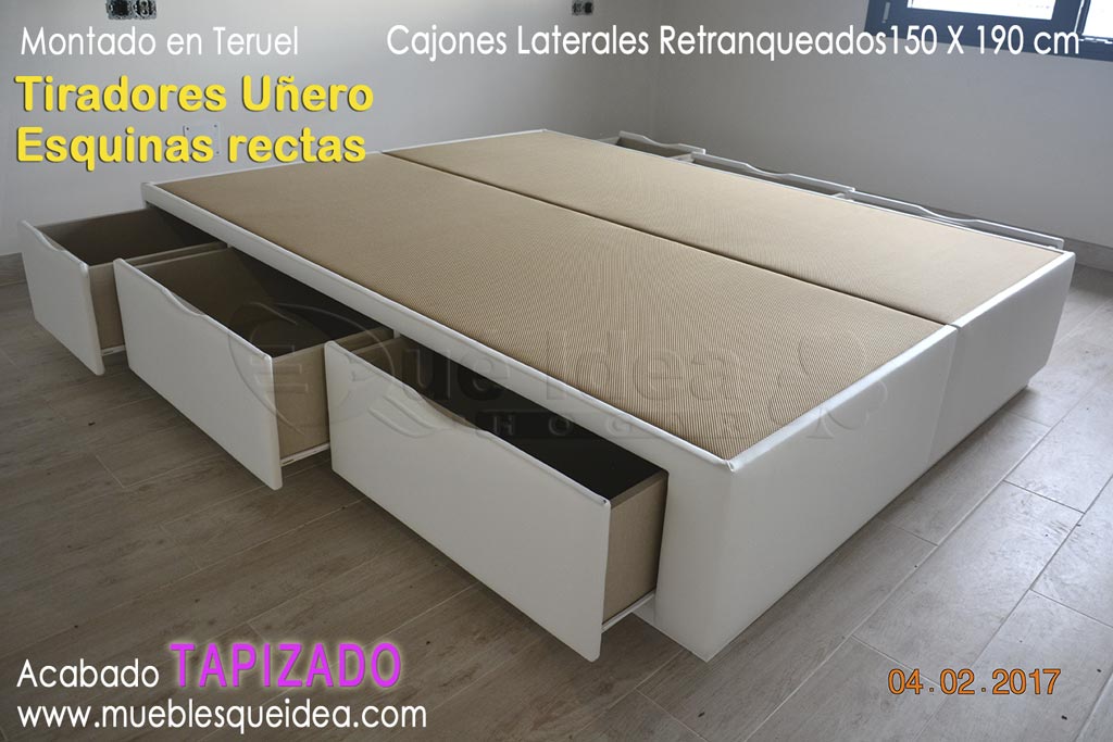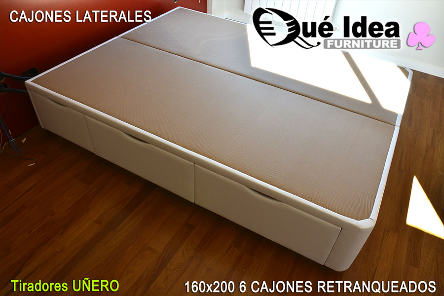 Canapé de cajones laterales con tiradores de tipo uñero de 160 de ancho por 200 de largo.