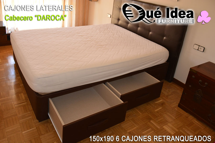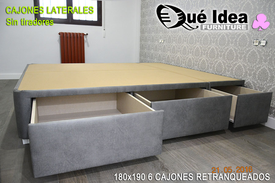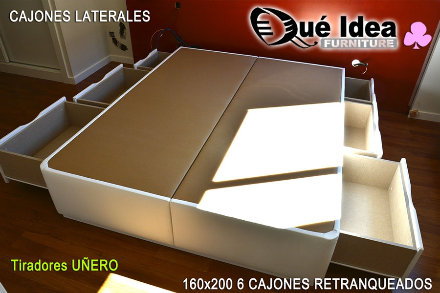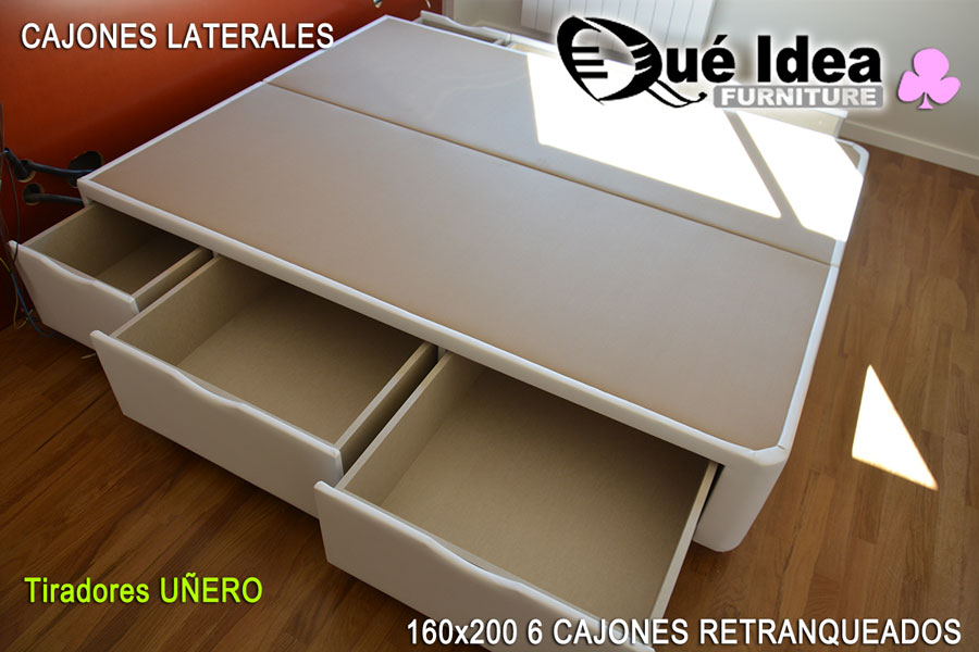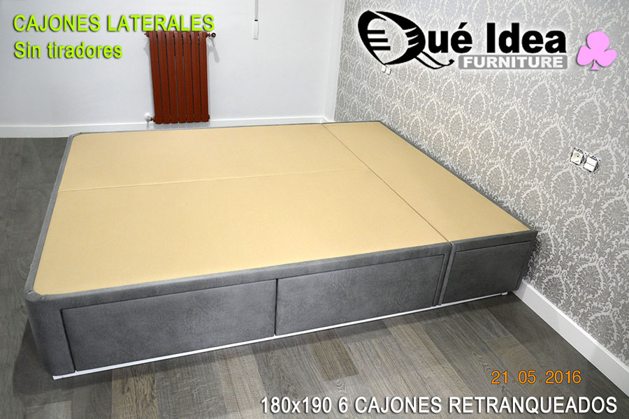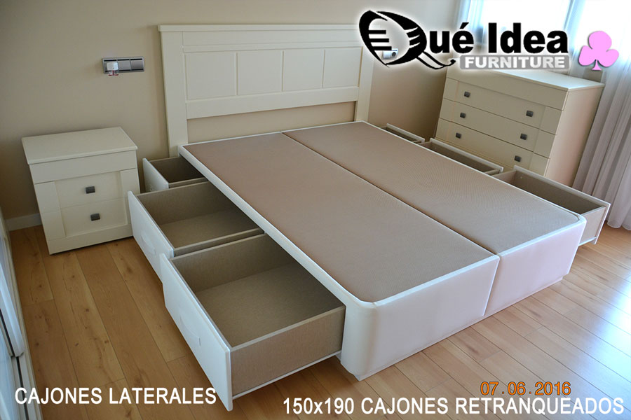 Canapé de cajones laterales con tiradores de tipo uñero de 160 de ancho por 200 de largo.