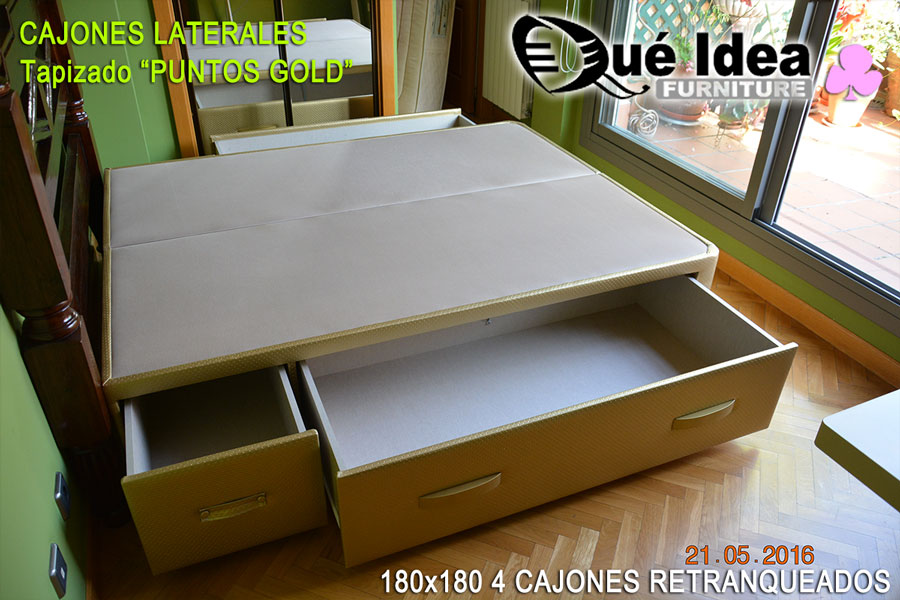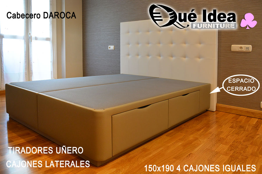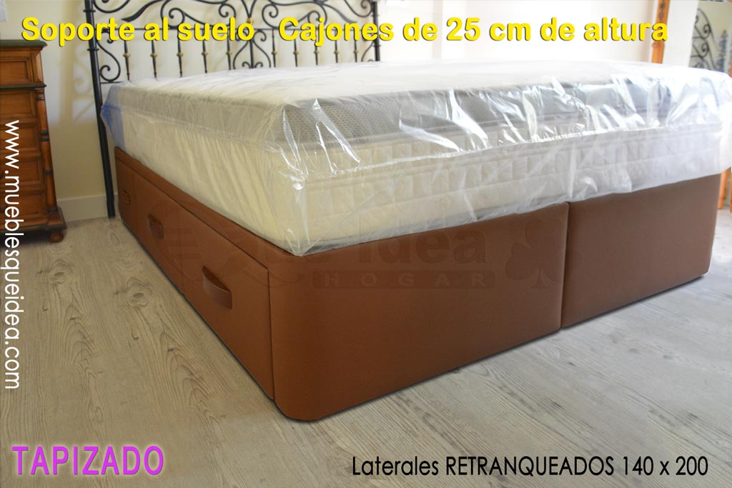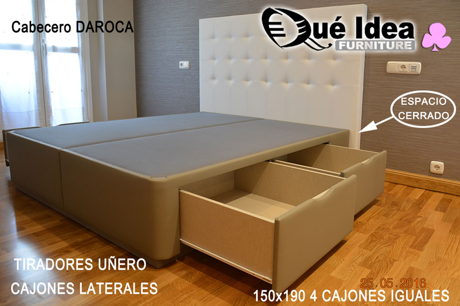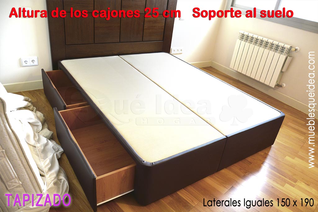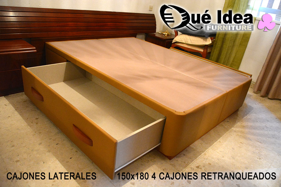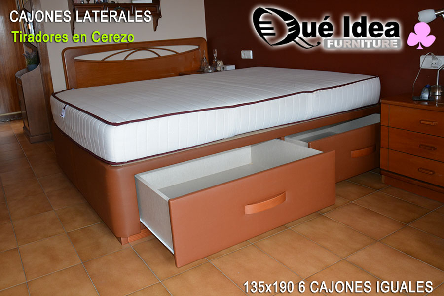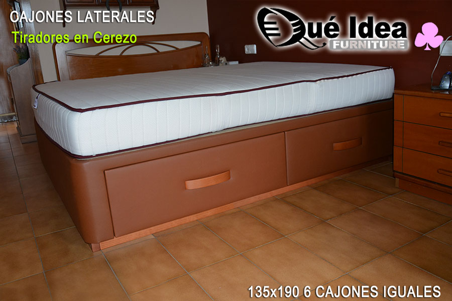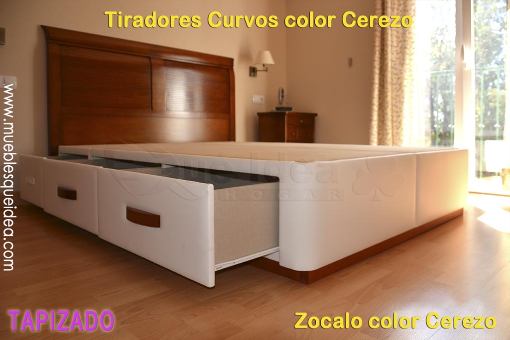 ![Canapé con cuatro cajones retranqueados color Camel Canapé con cuatro cajones retranqueados color Camel medidas 150x180 tiradores en color Cerezo]()