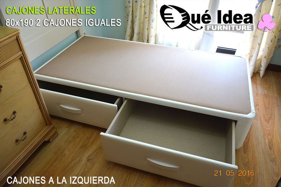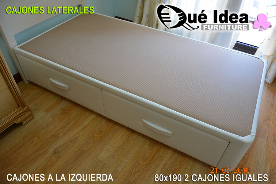 ![Canape individual de 80 centímetros de ancho por 190 de largo con cajones en un lateral iguales]()
